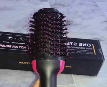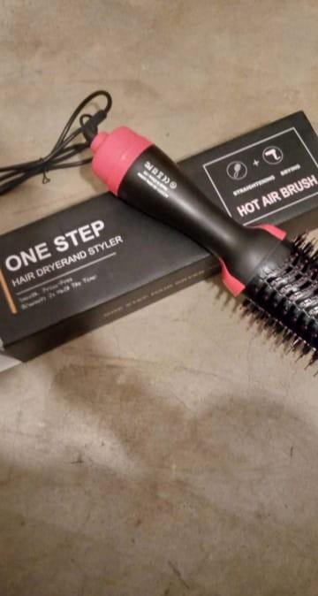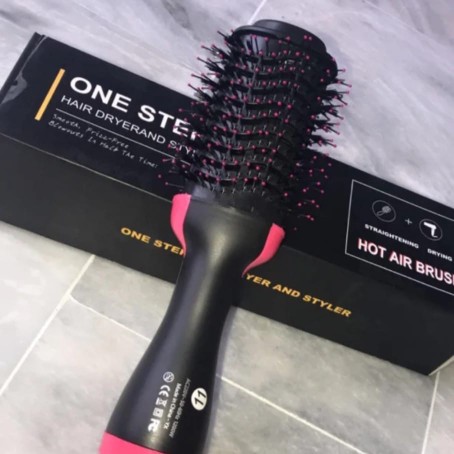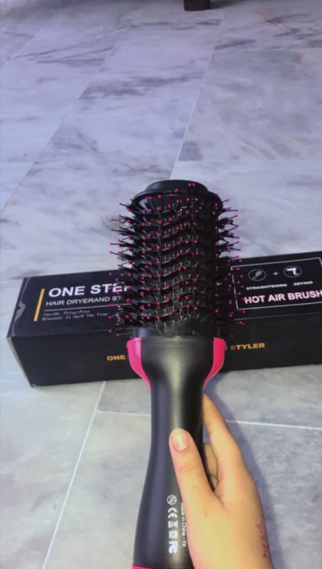 Introducing the One Step Hair & Blow Dryer! This versatile tool combines a blow dryer, straightening brush, and hot air brush in one.
